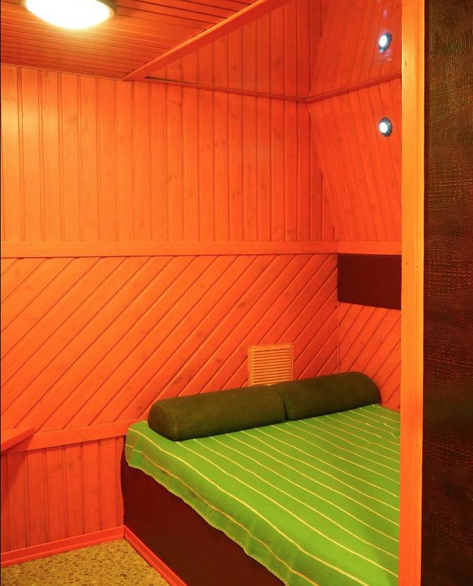 Сауна порадовала: чистым номером, жаркой финской парной, и возможностью прослушивать музыку через их wi-fi, предоставили замечательную переносную колонку. Парная была просто шикарна! Можно было сидеть в сухом воздухе, а можно было поддать пару, с помощью ковша с холодной водой и раскаленных камней. В самом номере также имеется телевизор, аудиосистема, хороший кожаный диван, столик, отличное джакузи. К слову говоря, в джакузи наиболее комфортно находиться вдвоем.